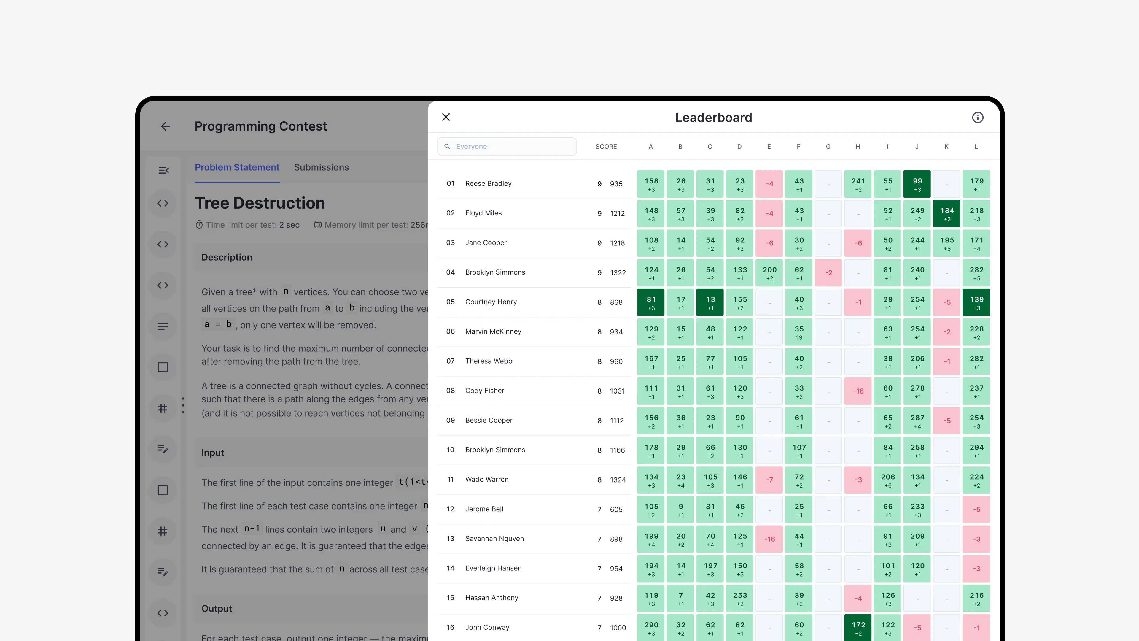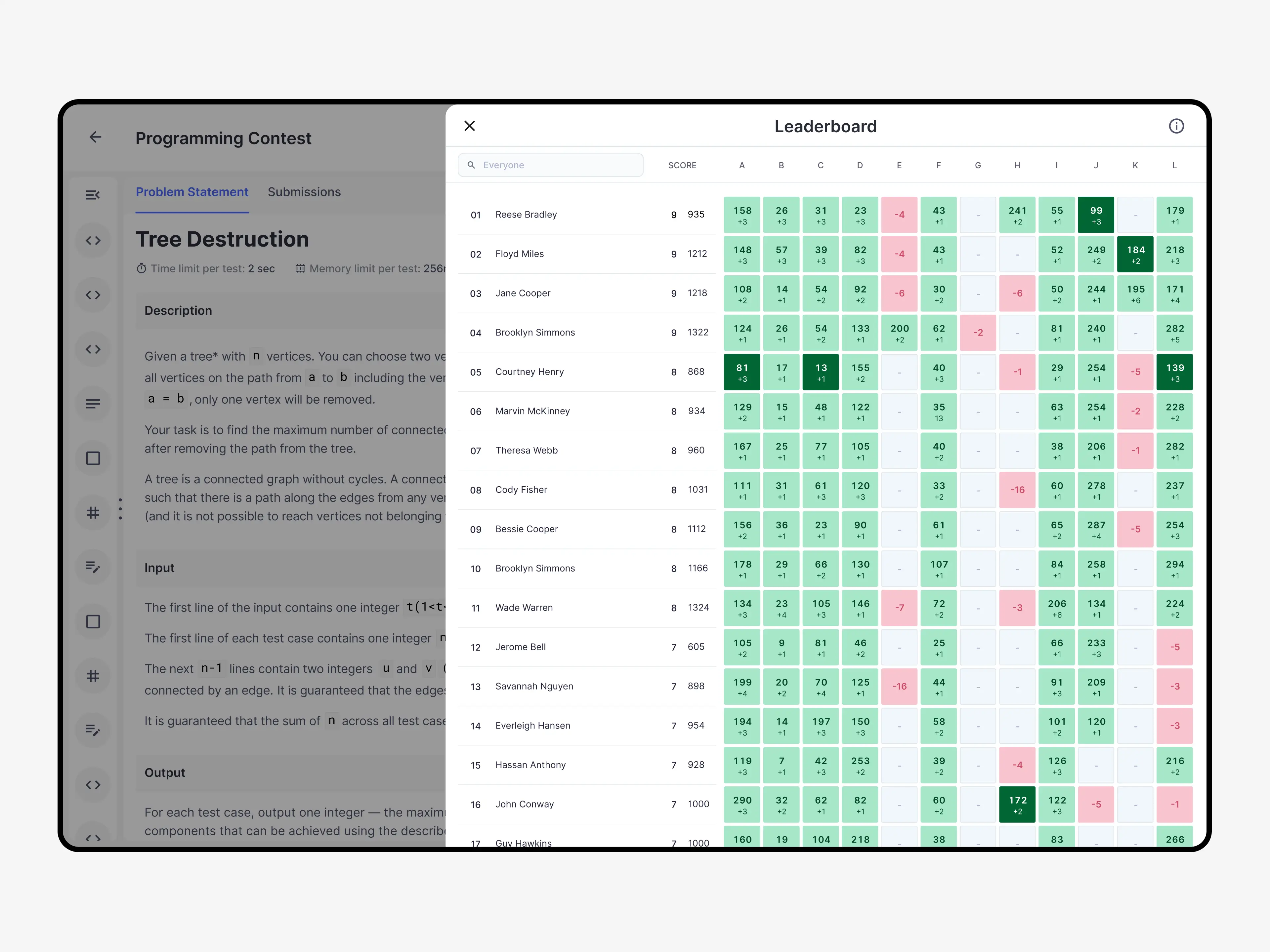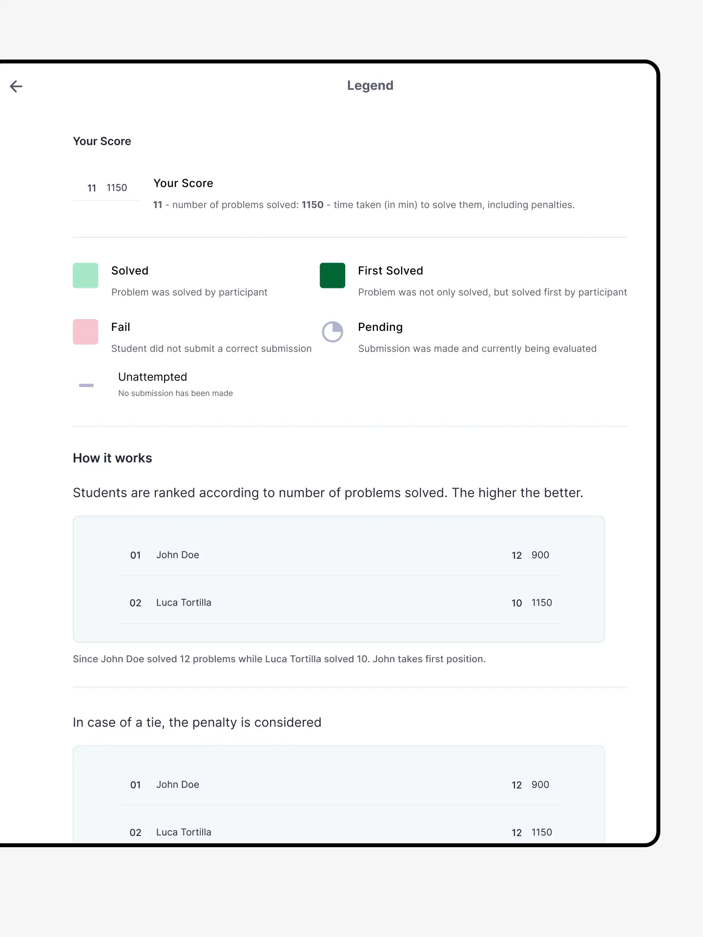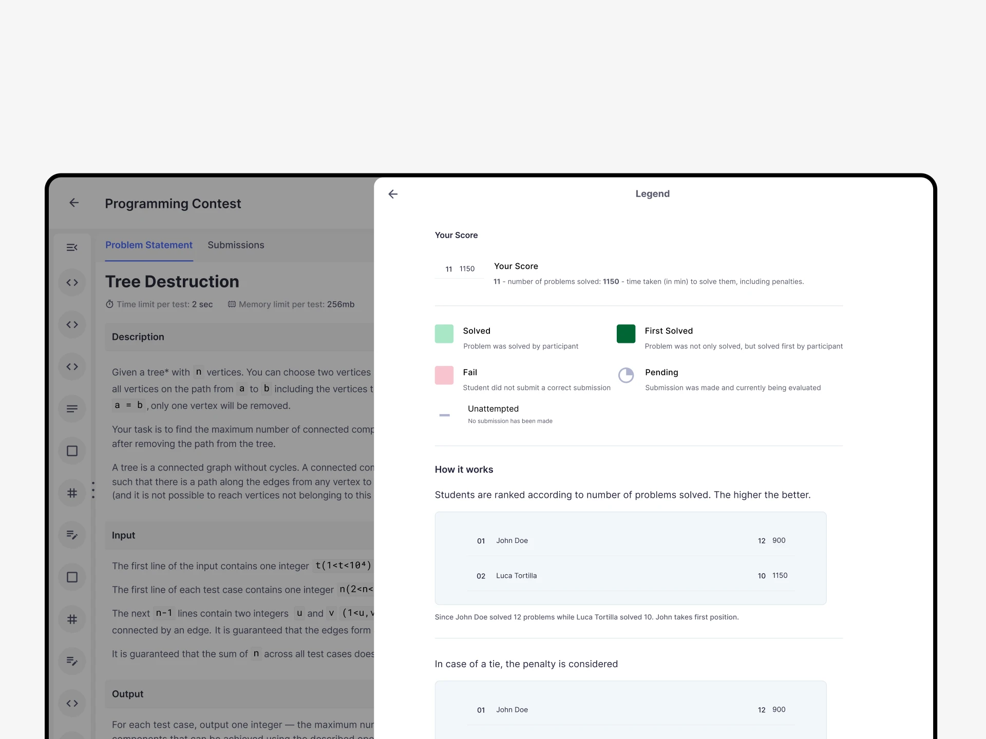 Reworked the contest experience, from how students read and solve problems to tracking their submissions and understanding rankings, to support the platform's first official competition with 80+ participants while keeping information accessible.