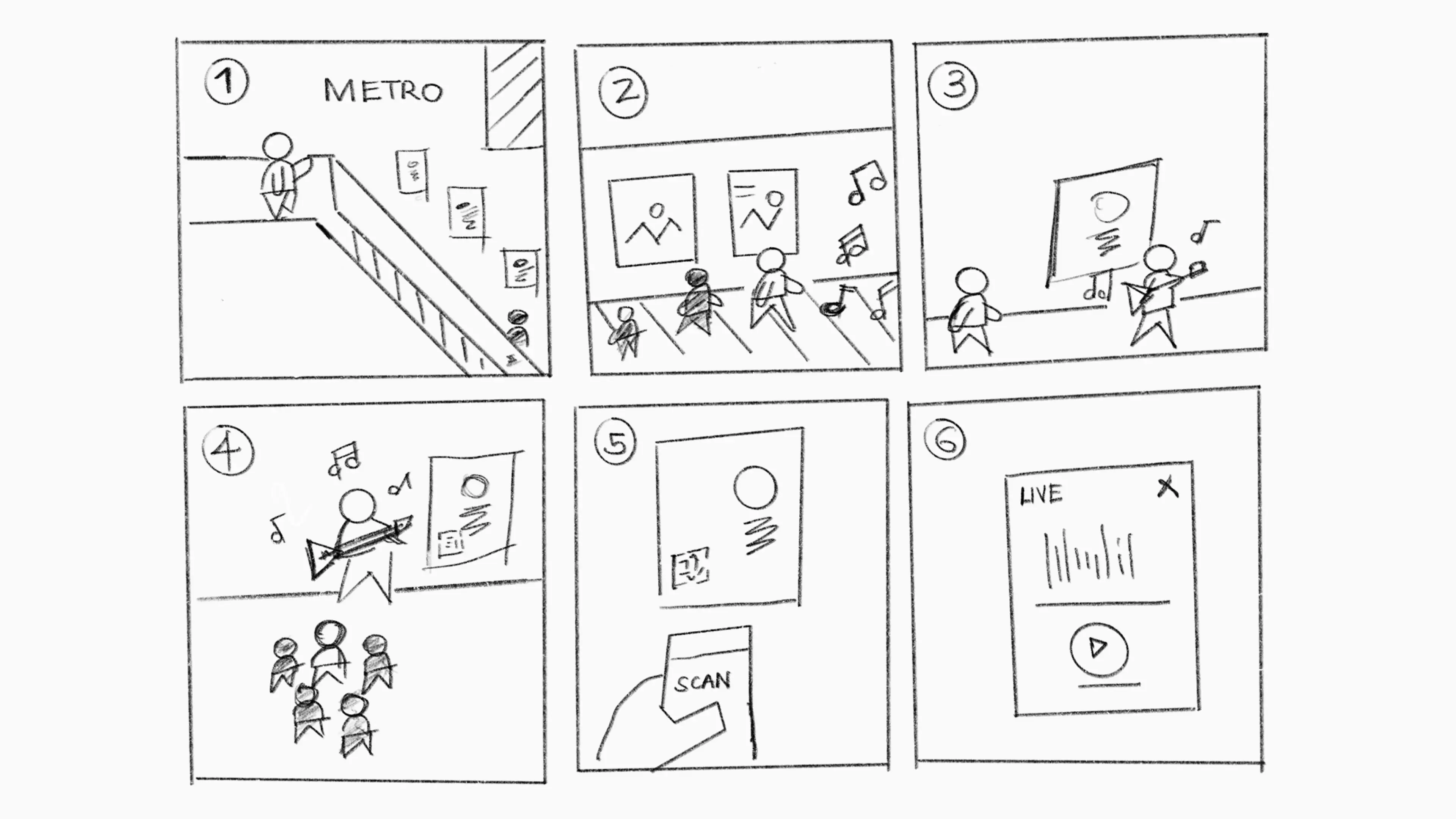 Delivered a prototype transforming brief encounters into sustained experiences, enabling cashless tipping and extended musician exposure beyond physical stations.