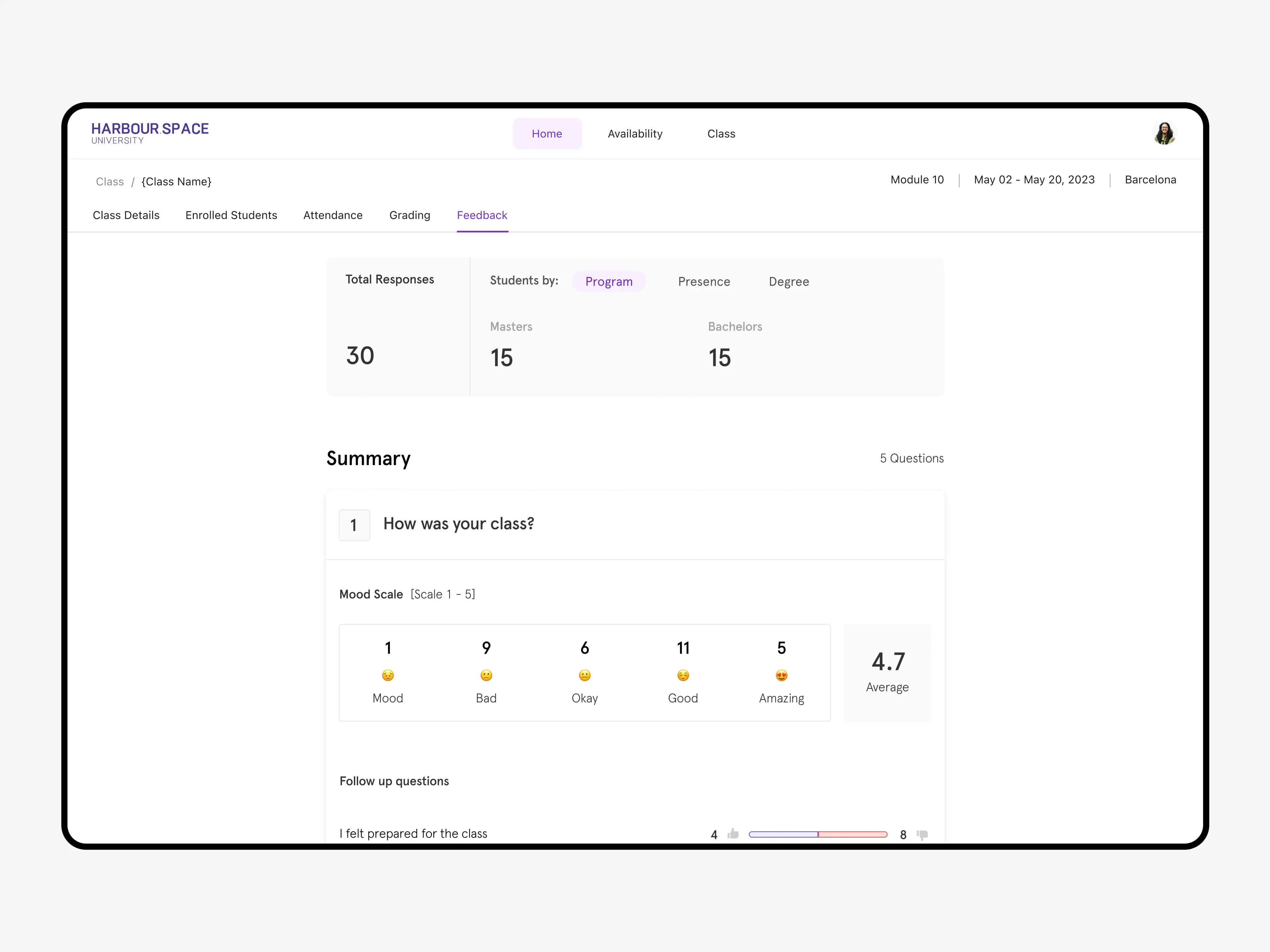 Designed a custom academic operations platform for faculty coordination, syllabus management, attendance tracking, and student feedback collection.